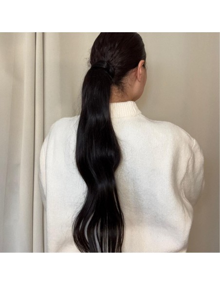 Un ponytail épais, soyeux et brillant, grâce à des cheveux aux cuticules alignés de la racine à la pointe.